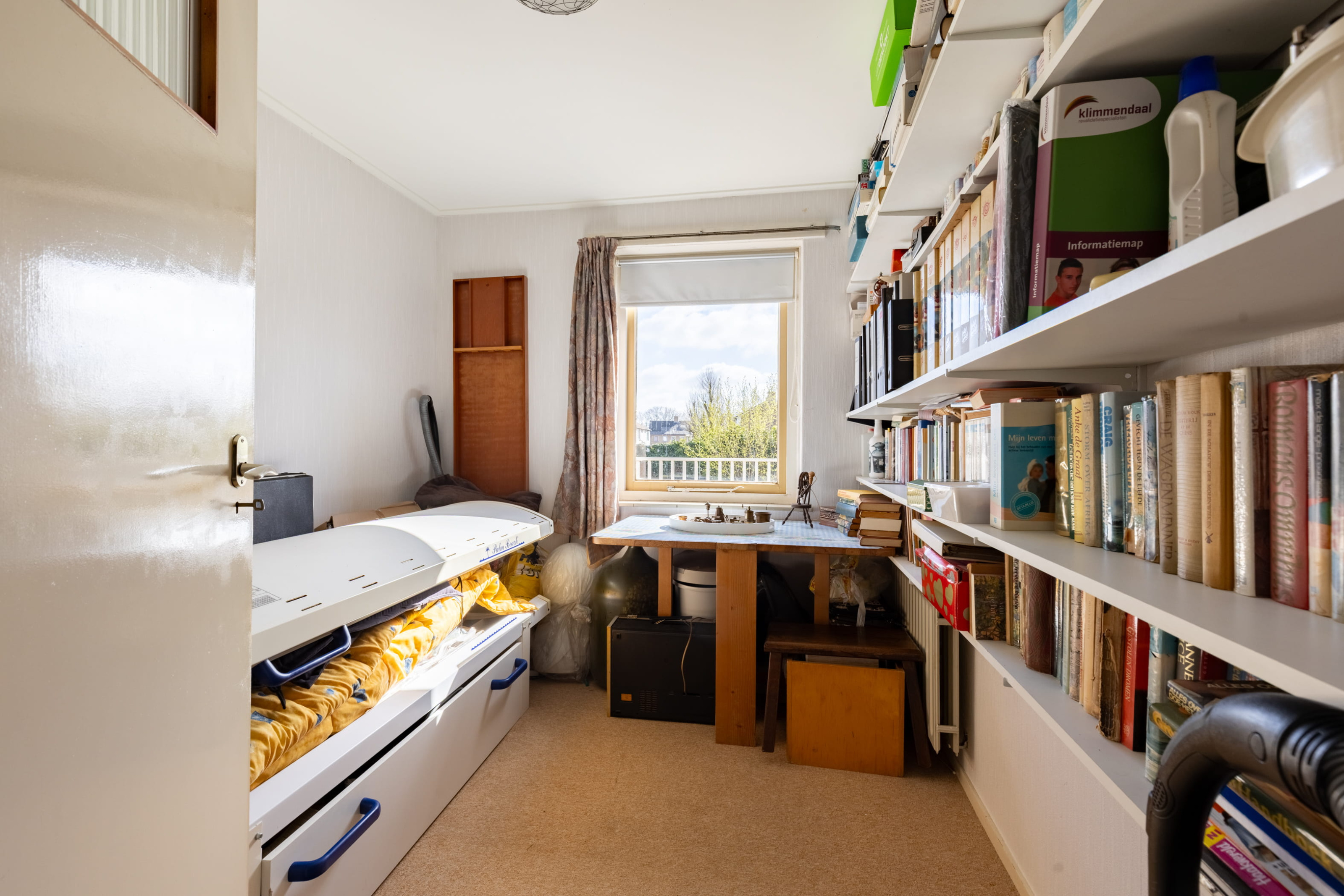 Via een vlizotrap bereik je de tweede verdieping. Hier bevindt zich een ruimebergzolder, perfect voor het opbergen van koffers, seizoensspullen en anderezaken die je niet dagelijks nodig hebt. Deze ruimte draagt bij aan hetpraktische karakter van de woning.
