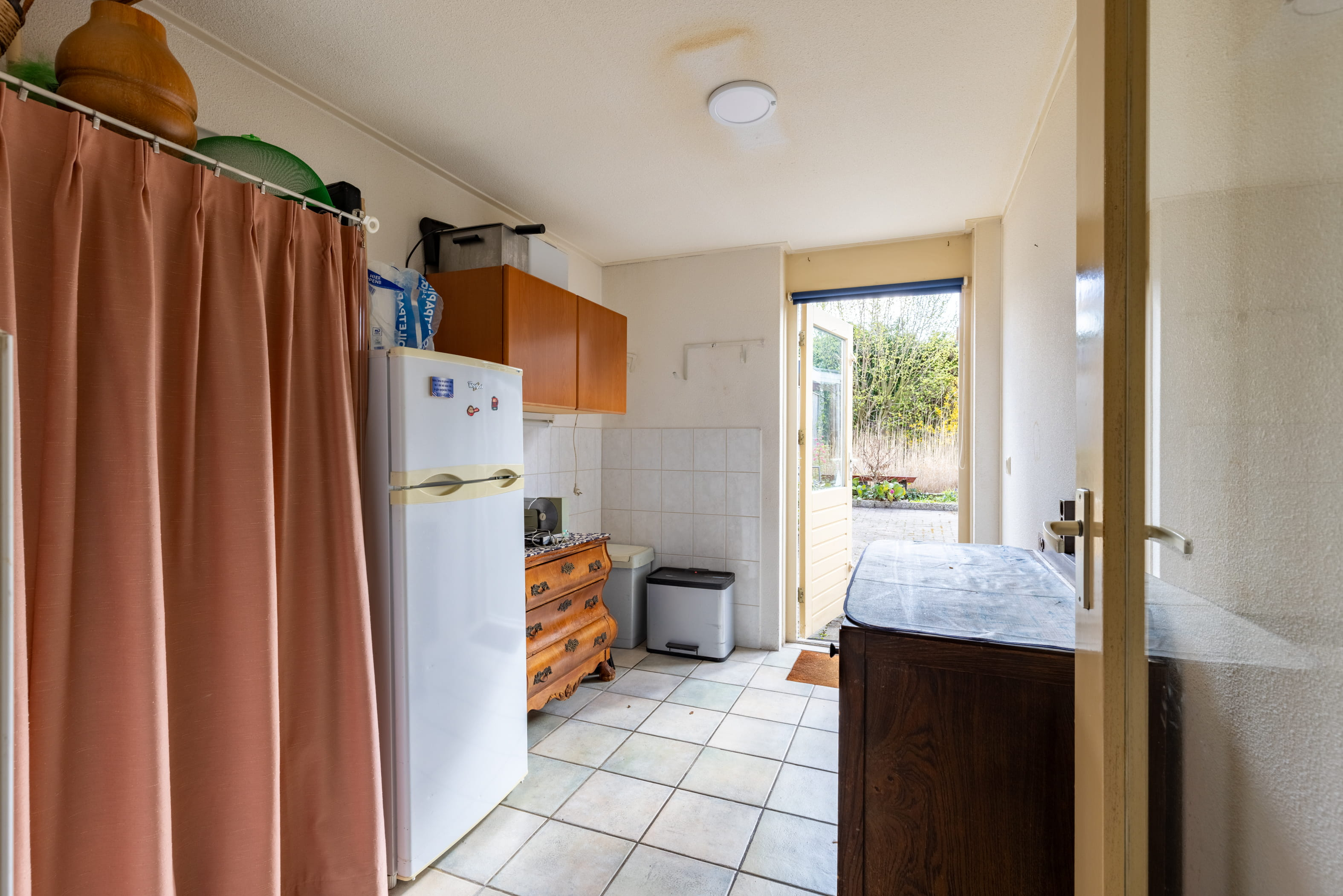 Aansluitend bevindt zich de praktische bijkeuken. Dezeruimte is ideaal voor extra opslag, het plaatsen van witgoed en het creëren vaneen nette, opgeruimde woonomgeving. Hier heb je bovendien extra mogelijkhedenvoor bijvoorbeeld een tweede koelkast, vriezer of provisieruimte.