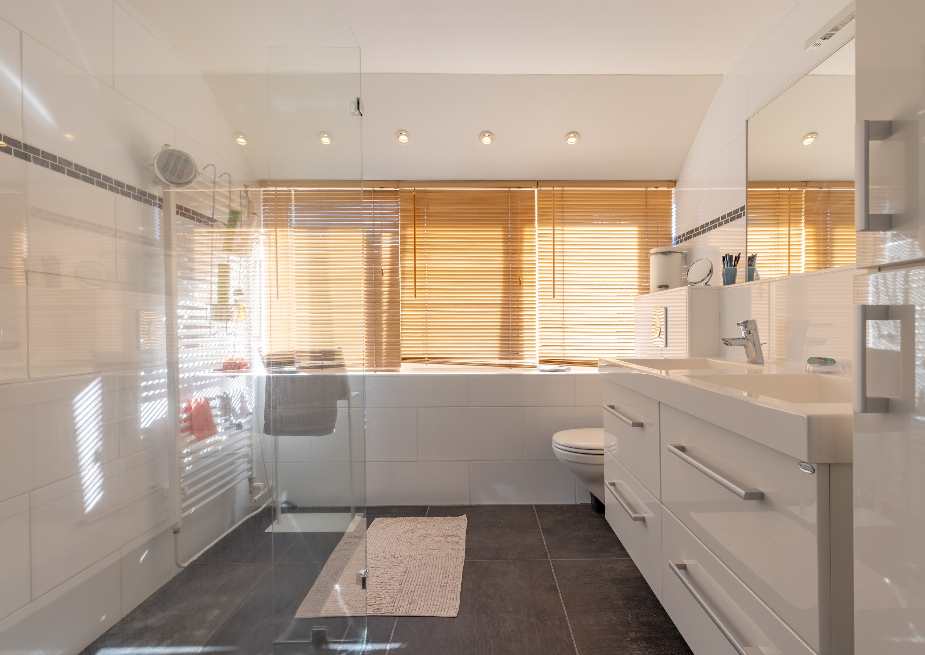 Elke kamer, van de ruime woonkamer tot de gezellige keuken: overal vind je licht, lucht en precies genoeg privacy. Even opfrissen in de moderne badkamer, een boek lezen op het balkon, uitgebreid koken... Het huis denkt met je mee. Over smaken valt natuurlijk niet te twisten, maar dat je hier net zo makkelijk samenkomt als je je even terugtrekt, staat buiten kijf.